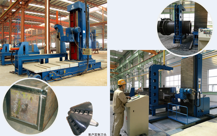 該機(jī)用來(lái)加工H型鋼、箱型柱和筒體端面,動(dòng)力頭可調(diào)0-45角度,以銑型鋼的端面坡口。